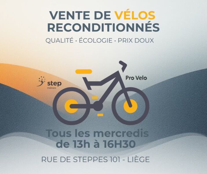 Depuis 2024, Step Métiers développe avec ProVélo Liège une filière de formation par le travail en mécanique vélo. Placés en situation réelle, les stagiaires reconditionnent des cycles de récup’ qui sont ensuite proposés à la vente à de petits prix.